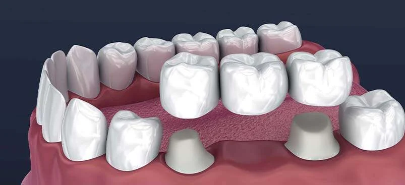 A dental bridge is a prosthetic device designed to replace one or more missing teeth. It typically consists of two crowns on the adjacent teeth, called abutments, and a false tooth or teeth in the middle, known as pontics. A dental bridge helps fill the gap left by missing teeth, restoring both the appearance and functionality of your smile.